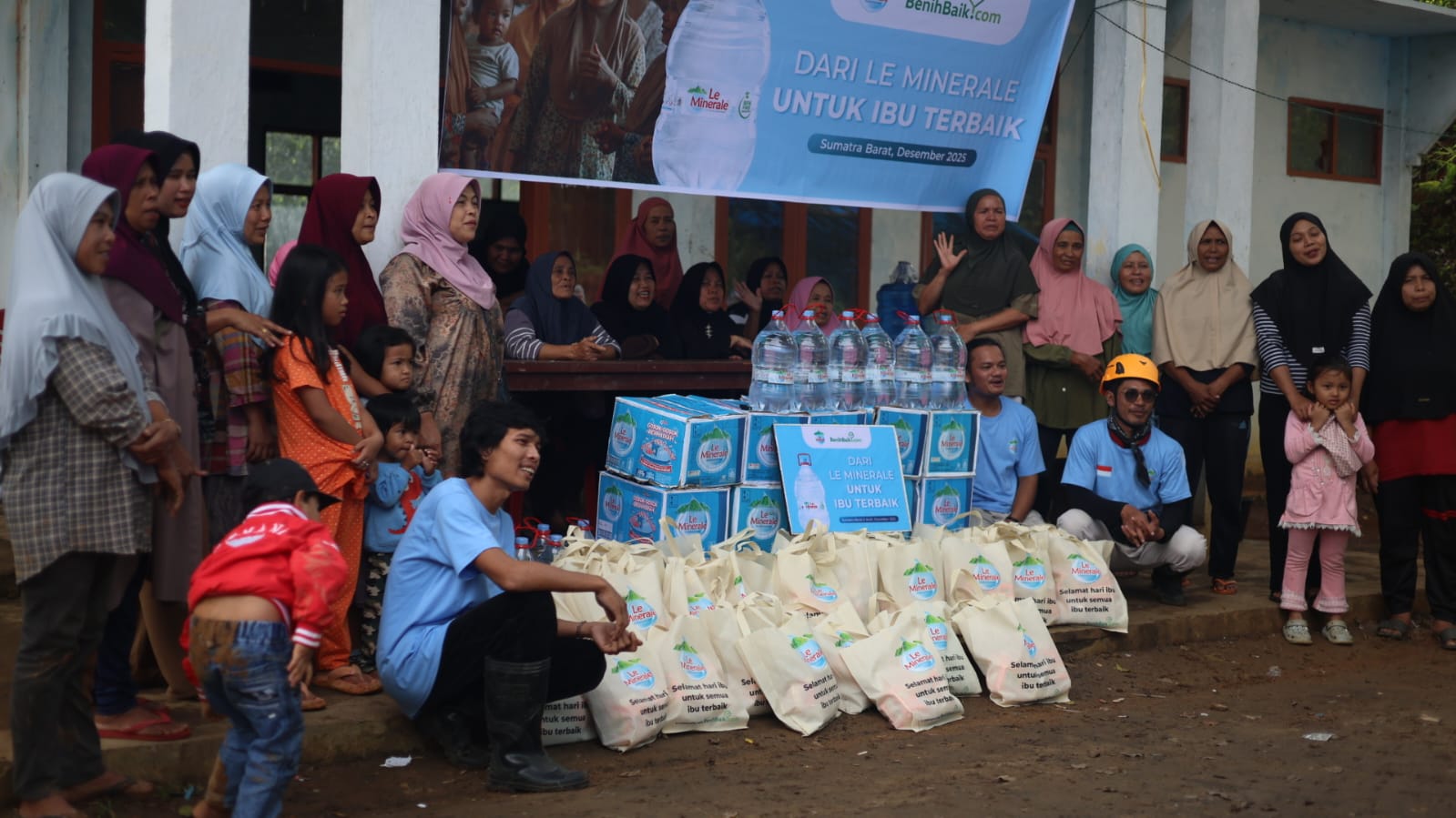 Dalam suasana ini, Relawan Nusantara bersama Le Minerale dan BenihBaik.com hadir membawa lebih dari sekedar bantuan. Pada 14 Desember, dimana momen tersebut mendekati momentum Hari Ibu, ketiga mitra ini berkolaborasi menyalurkan puluhan dus air minum Le Minerale dan ratusan paket kebutuhan khusus ibu kepada para penyintas yang berasal dari Kampung Awur dan Kampung Tanah Liek, dua wilayah yang kini ditetapkan sebagai zona merah rawan longsor.